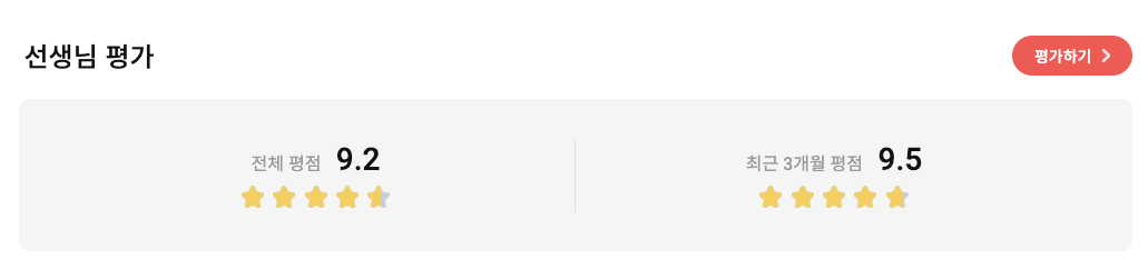 여기 ‘전문강사진에 들어가서’ 내가 수업한 선생님을 클릭해서 상세보기를 하면 하단에 강사평가를 할수 있는 버튼이 있습니다.
