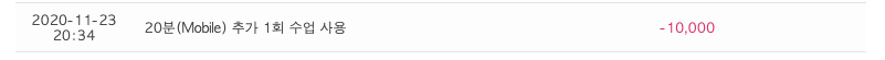 왜냐하면 저 역시도 올해 초에 큰 뜻을 품고 6개월 짜리 출석부를 결제해서 어느새 그 기간이 끝나버리고 이제는 결제 하면서 받았던 'point'랑 선생님이 휴강을 했거나 휴가를 가셨거나 등의 사정이 있어서 class를 대신해서 받았던 'point'들 그리고 각종 게시판에 글을 올려서 받았던 'point'들 등 이렇게 저렇게 모여있던 많다고 생각헸던 'point' 이었는데 쓰기 시작하니까 순식간에 다 소진되더라구요. 물론 여기서 말하는 소진은 실제 저의 전화영어 20분 class 에 바로바로 수업연장으로 사용한것이랍니다.